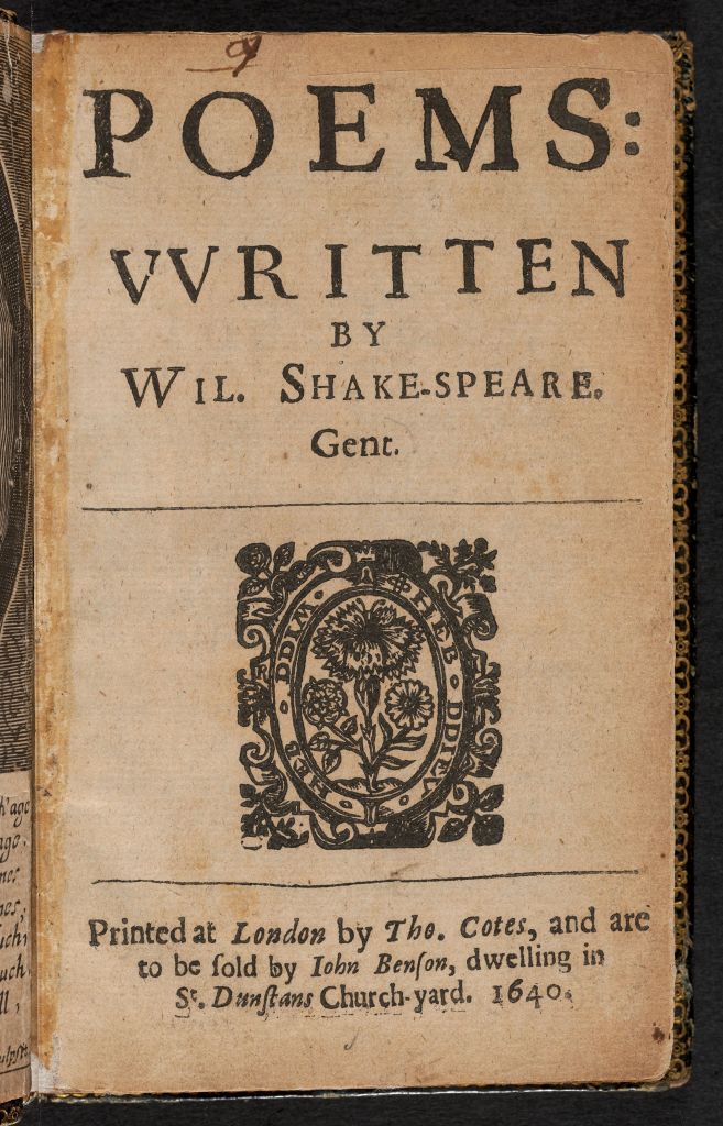 William Shakespeare. Poems vvritten by Wil. Shakes-peare, gent. (London, John Benson, 1640), https://ark.digitalcommonwealth.org/ark:/50959/qb98pz027.