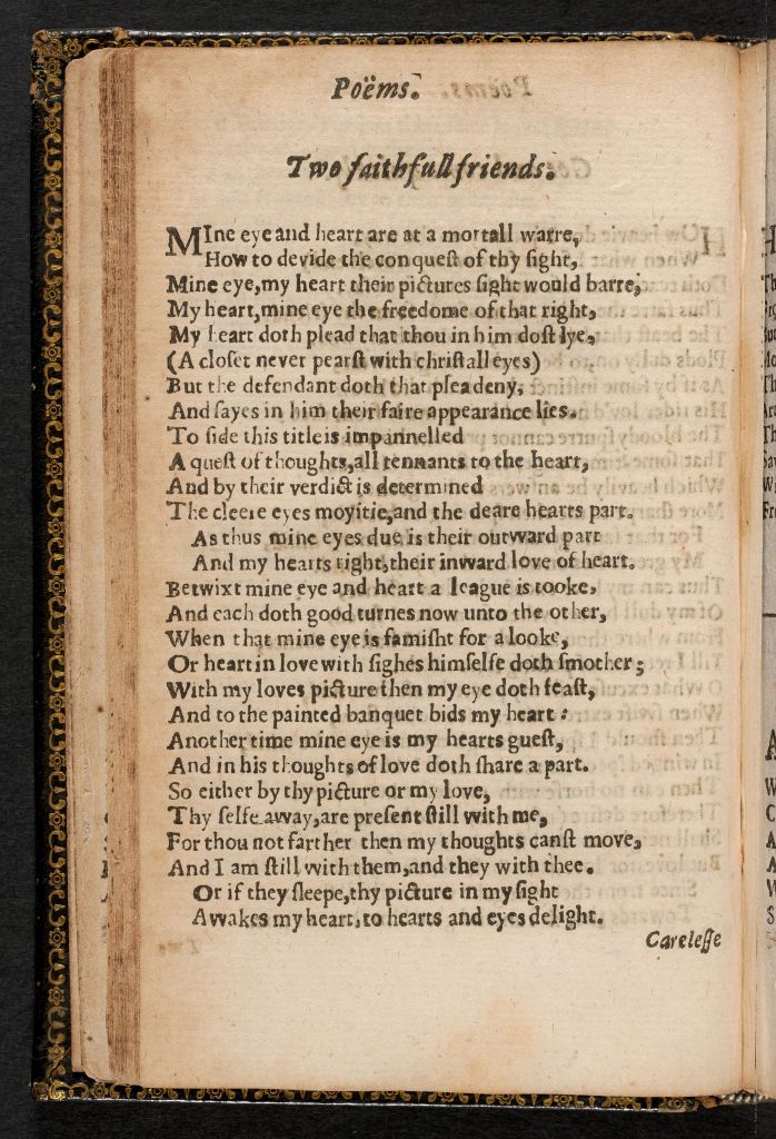 Benson calls these combined sonnets “Two faithfull friends.” These poems include lines such as,